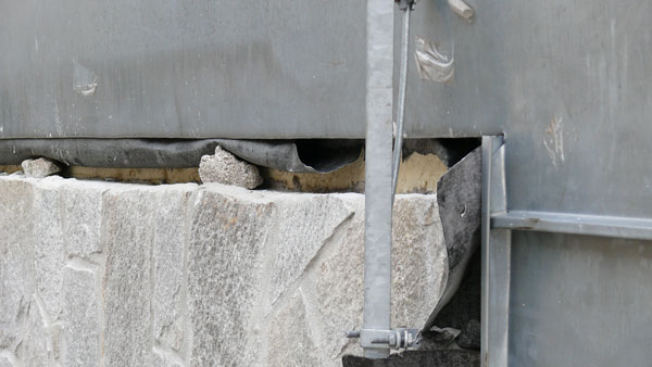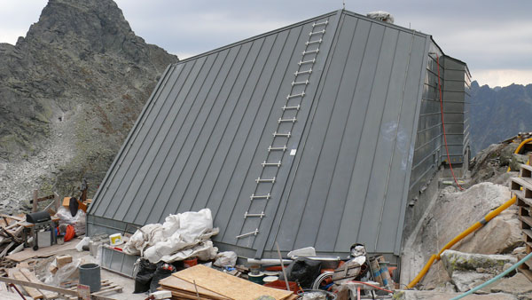 Pohľad na zošikmenú časť chaty – miesto dopadu lavín