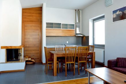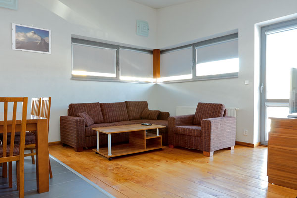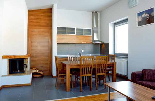 Každý z dvanástich apartmánov má popri spoločenskej časti aj kúpeľňu a jednu až tri izby. Ďalším pozitívom riešenia areálu je suchý prístup k všetkým objektom či elektronické prepojenie apartmánov s centrálnou recepciou. Výber materiálov podnecuje súzvuk s lokalitou. Dominuje im drevo, ktoré sa uplatnilo v exteriéri aj interiéri, kameň či plech. Odvetrané fasády dotvára predsadený plášť z tepelne upraveného dreva v hornej časti a z cetrisových dosiek v spodnej časti domov. Interiér dýcha osobitnou atmosférou vďaka inštalovaným kozubom, ako aj smrekovej dlážke.