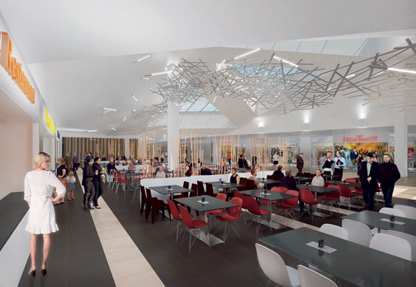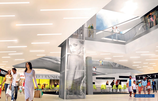 Do objektu povedú tri hlavné vstupy, v prvej fáze však budú dokončené len dva. „V týchto miestach bude pasáž rozšírená a vytvorí veľkorysé átriá so zasklenou strechou – tie budú tvoriť dominantné priestory celého objektu,“ hovorí architekt a dodáva, že okrem obchodných prevádzok investor v centre štandardne plánuje umiestniť aj priestory určené na voľnočasové aktivity, ako napríklad kaviarne, reštaurácie, kino a podobne.