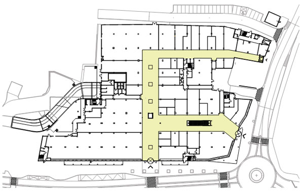 Z pohľadu dizajnu základnej pasáže bola zásadná zmena v tom, že sa v Piešťanoch išlo na rozdielnu konštrukčnú výšku. V bratislavskom Auparku je výška prvého nadzemného podlažia 6,5 metra, v Piešťanoch iba 5,5 metra. Aj v tomto prípade sa zachovala kontinuita so stavebným konceptom kancelárie Jančina architekti, pretože menšiu konštrukčnú výšku vyriešili už spomenuté, mohutnejšie svetlíky.