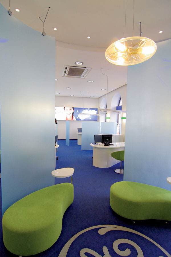 Radosť z oblúka a farby: Interiéry pobočiek GE Money