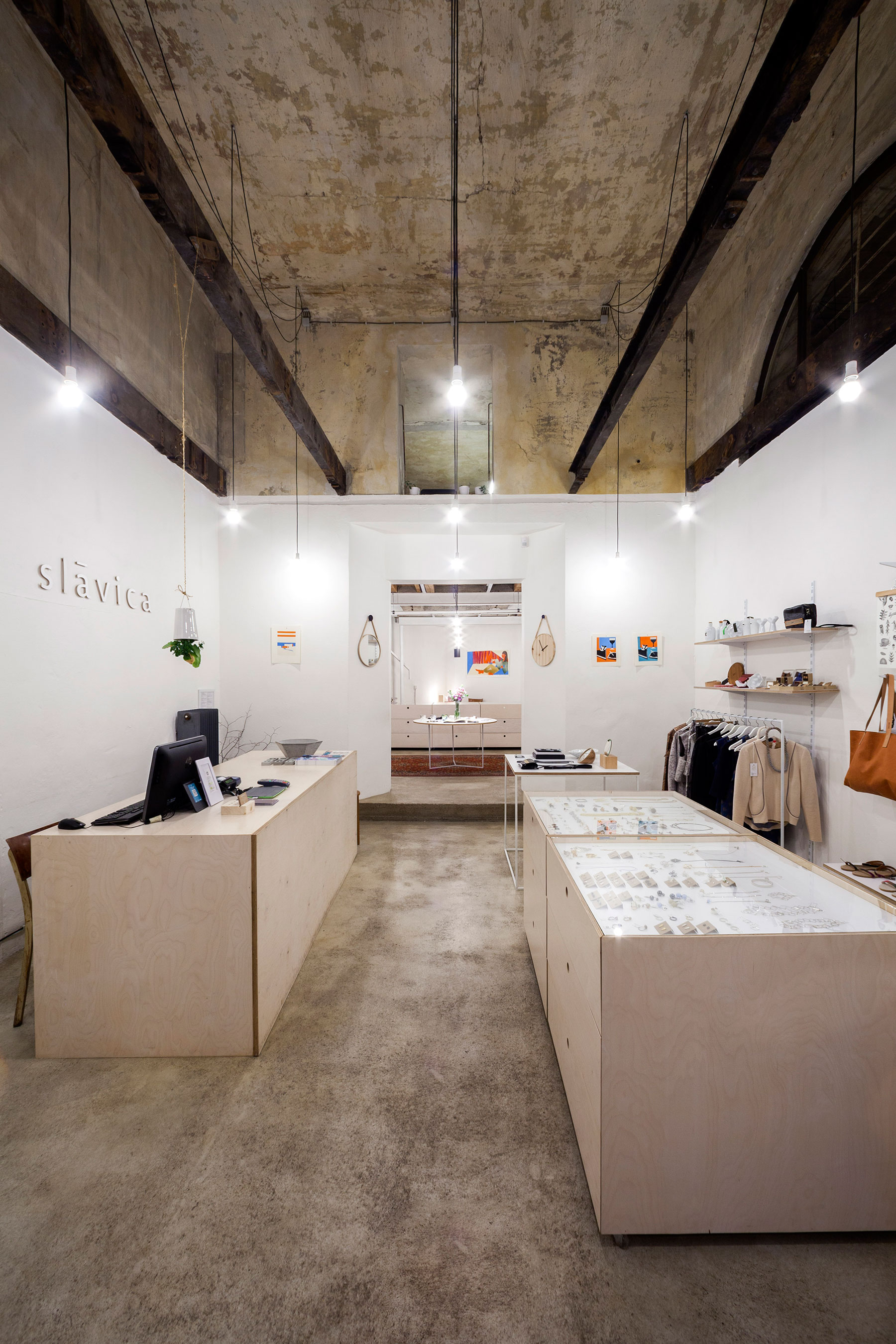 „Obchod je vsadený do parteru mestského paláca v historickom jadre Bratislavy. Pracuje s pôvodným vnútorným priestorom tak, že ho očisťuje od novších stavených zásahov a odkrýva stavebnú podstatu jeho historických vrstiev. Nové prvky interiéru sú reverzibilné, aby zbytočne neprekrývali pôvodné konštrukcie. Koncept interiéru je navrhnutý tak, aby vytváral jednoduchý podklad pre vystavený tovar, čiže šperky a predmety úžitkového dizajnu. Povaha historického priestoru sa vpisuje do interiéru odkrytou konštrukciou stropov a podlahou, ktorá jeho charakter čiastočne reflektuje novým betónovým poterom.