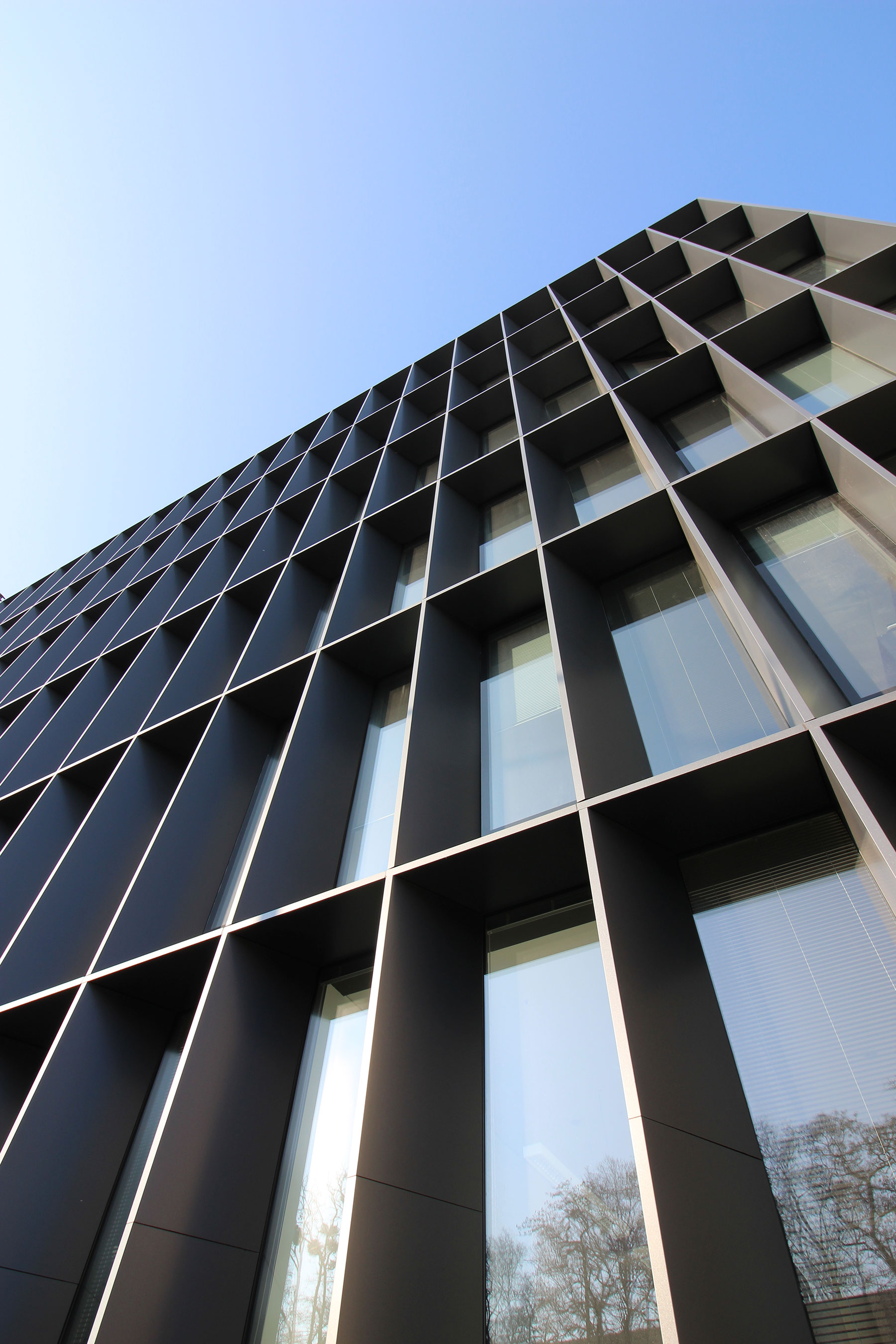 neformálne stretnutia. Z hľadiska vnútorných priestorov je dôraz kladený na veľkorysé riešenie dvojpodlažnej vstupnej haly s galériou, keďže ostatné administratívne podlažia sú prísne utilitárne. Otvorená, transparentná, so zeleným nádvorím prepojená vstupná hala kontrastuje s prísnym pravidelným rastrom fasády a tvorí dôstojný vstupný priestor pre návštevníkov.“