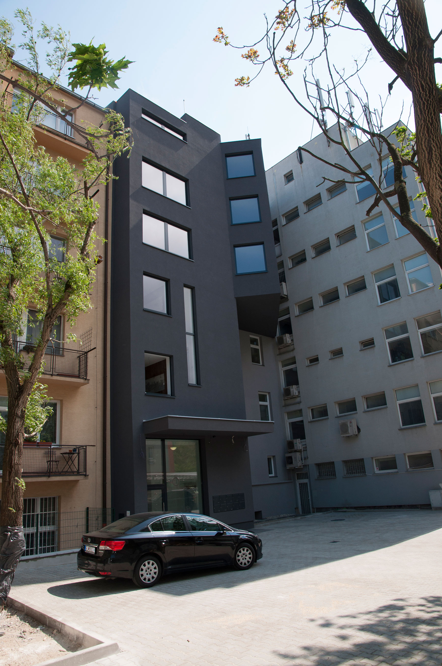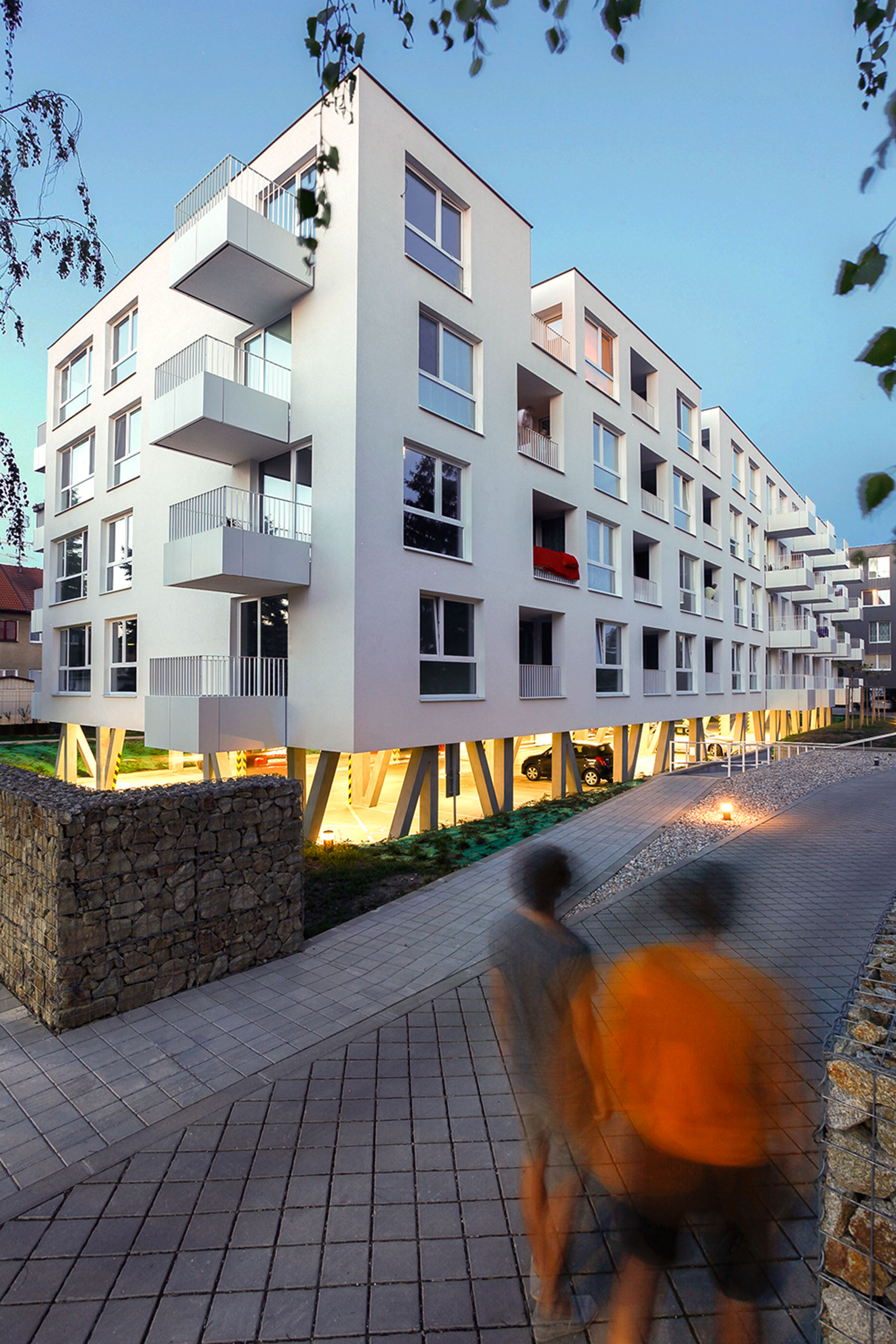„Dva bytové domy sú navrhnuté na miestach pôvodného výrobného a skladového objektu výrobného družstva Avana. Bohužiaľ, počiatočný zámer pôvodné objekty zrekonštruovať sa pre statické problémy nepodaril. Domy sa teda nakoniec navrhli na pôvodných pôdorysoch. Obsahujú malé byty dostupné aj pre mladé rodiny, keďže sú navrhnuté s cieľom čo najnižších stavebných nákladov.“