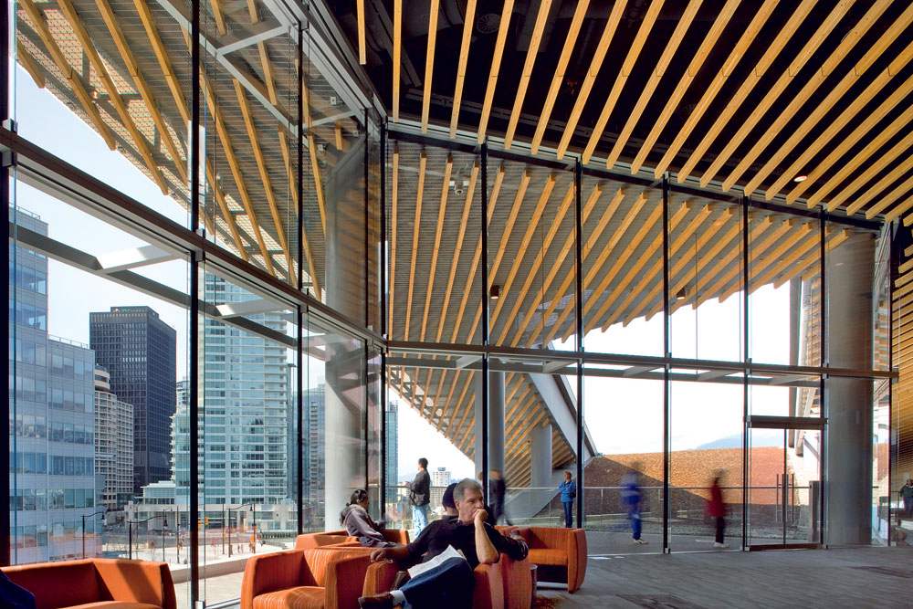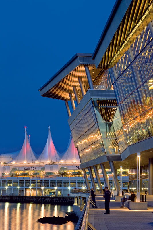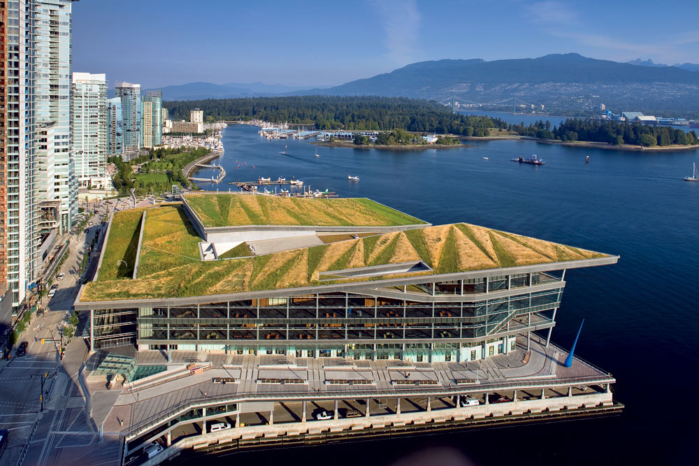Kongresové centrum Vancouver Convention Centre West získalo ako prvé svojho druhu certifikát LEED Platinum v Kanade. Vybudovali ho v roku 2009 na nevyužívaných pozemkoch, brownfieldoch, na nábreží s výhľadom na hory, oceán aj mestské parky. Hoci táto budova svojou veľkosťou a funkčnou náplňou pripomína priam mestskú štvrť, je vzorovou ukážkou výnimočne citlivého prístupu celého autorského tímu.