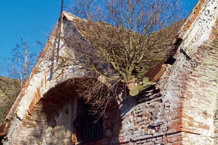 Príčinou jej rozpadu je prerastanie strechy náletovou zeleňou a drevinami, ktoré tu našli živnú pôdu,“ vysvetľuje statik Ivan Holub. Podhubie všetkých stavebných aj statických porúch možno podľa jeho slov hľadať v zanesení pôvodného drenážneho systému. Keďže strecha nemá odkvapové rúry, voda sa z objektu vyplavovala len prostredníctvom takzvaných chrličov. Ide o plechové jazyky, ktoré sa nachádzajú medzi vikiermi. Chrliče sústreďujú vodu do súvislého toku, ktorý smeruje z objektu do dvora.