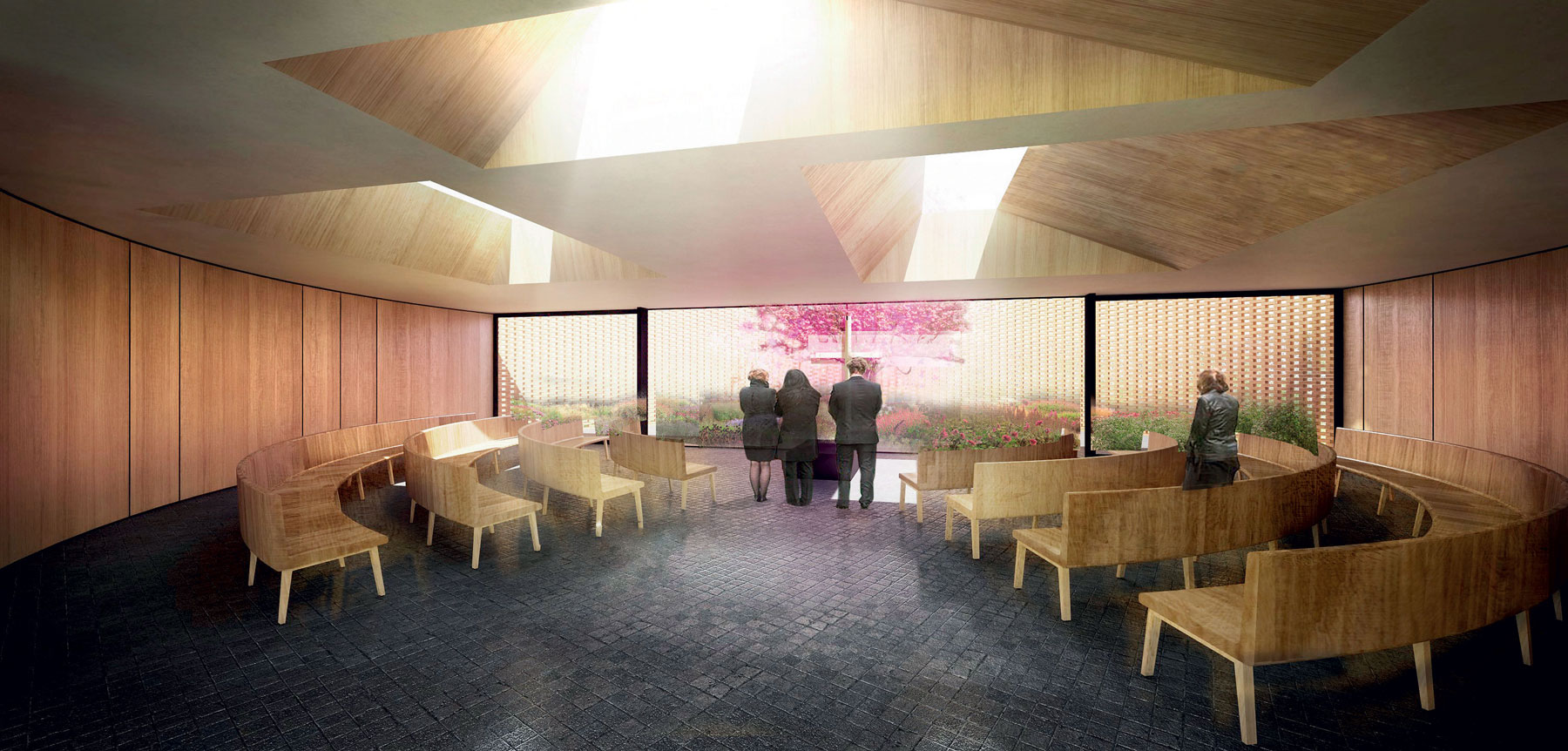 Tento tvar vznikol úplne náhodu a vôbec sme s tým nepočítali,“ hovorí autor konceptu Matúš Vallo. „Ale pri podobných zadaniach sa takéto veci môžu vyskytnúť. Chceli sme, aby Dom smútku bol pozitívne prijímaný, aby to nebola temnota, či priestor naplnený prílišnou religiozitou. Snažili sme sa o pekný objekt vyvolávajúci dojem otvoreného priestoru. Určite bolo zaujímavé pracovať s momentom danej hodiny, ktorú tam človek strávi v podstate v smutnom rozpoložení. Myslím, že architektúra môže jeho cítenie zmeniť, prípadne uľahčiť.“