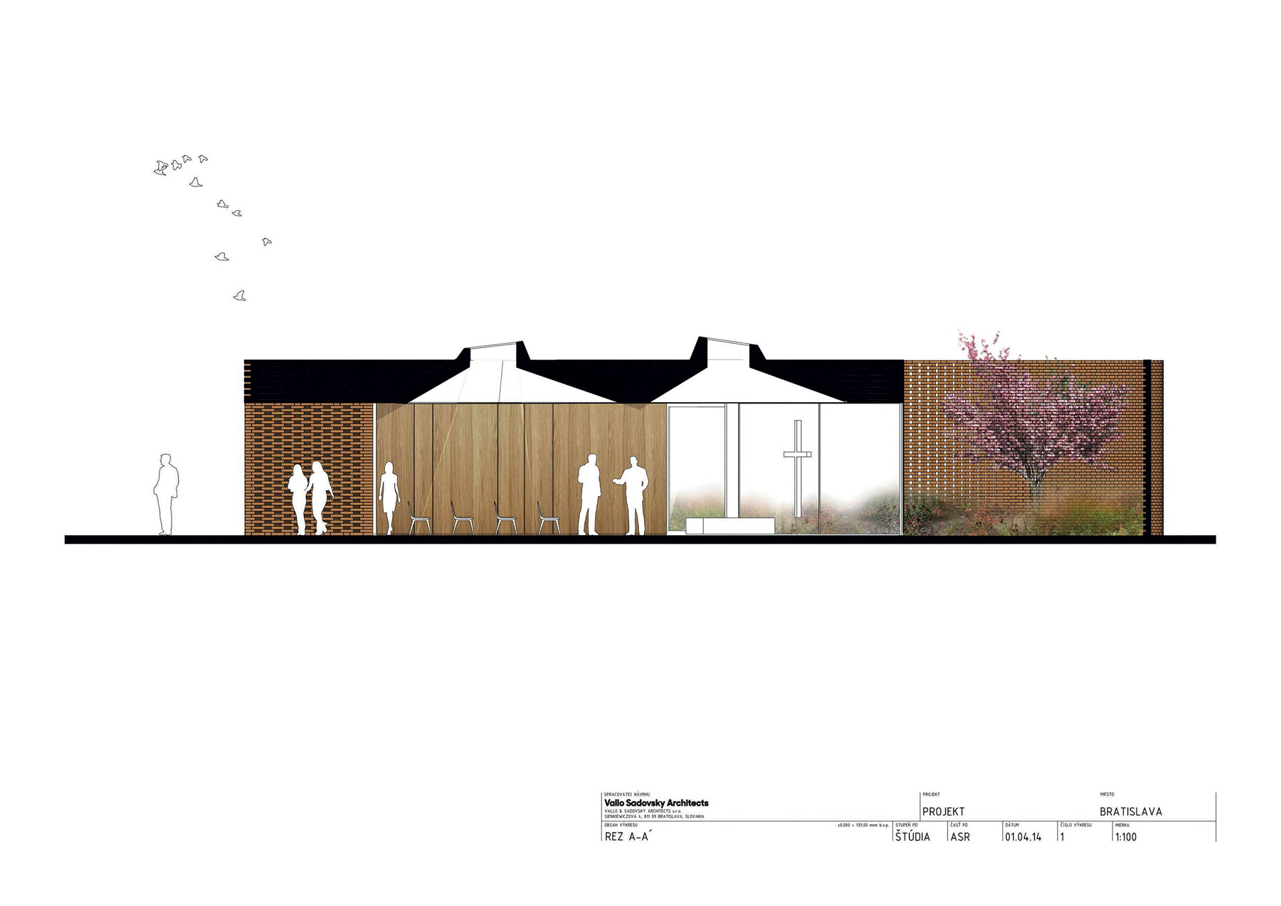Pre architektonickú kanceláriu Vallo Sadovsky Architects išlo o prvú skúsenosť s druhom stavby, ktorá je viazaná na nejaký obrad. Daná štúdia bola minulý rok vybratá na základe vyzvanej súťaže vypísanej mestom a mala aj finančnú nádej na realizáciu. „Po komunálnych voľbách sa to však otočilo a s najväčšou pravdepodobnosťou projekt nebude pokračovať,“ dodáva Matúš Vallo.