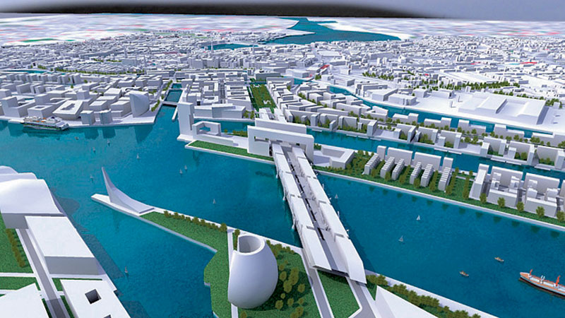 Viaceré doteraz nedocenené nábrežia riek svetových miest sa stávajú terčom pozornosti urbanistov, architektov i širokej verejnosti. Nedávno sa v Bratislave stretli architekti svetového mena – Dominique Perrault, Hadi Teherani a Peter Gero – a ich diskusia, ale aj jednotlivé prednášky sa pretínali v zaujímavom bode – v uvažovaní o tom, ako sa v meste zhostiť úlohy oživiť nábrežie rieky. Aj Hamburg sa učí milovať svoje nábrežia. Dôkazom je úspešná postupná revitalizácia štvrte Hafen City, súčasťou ktorej sa stane most vznikajúci v ateliéri Hadiho Teheraniho s príznačným menom: Living Bridge.