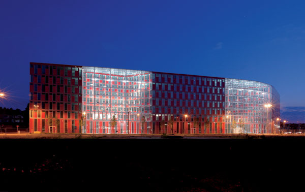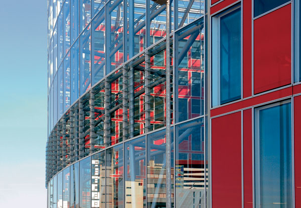 Konkrétne to znamená: dvojvrstvový plášť prepúšťajúci svetlo a netransparentná časť plášťa určená na ventiláciu. Budova umožňuje jednak prirodzené vetranie pomocou špeciálnych zavesených okien, jednak mechanické vetranie pomocou fasádneho systému. Jeho výhodou je aj vysoký stupeň prefabrikácie, čo značne urýchľuje jeho implementáciu.