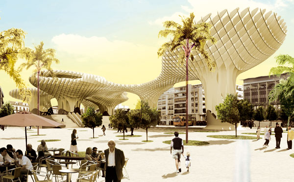 Obrovské niekoľkometrové huby, ktoré sa týčia nad bývalou mestskou tržnicou. Aj tak môže vyzerať architektúra vytvárajúca verejný mestský priestor. Metropol Parasol podľa návrhu berlínskeho architekta Jürgena Mayera H. a madridského stavebného inžiniera Carlosa Merina je stavba, ktorá by sa mala stať novou ikonou španielskej Sevilly.