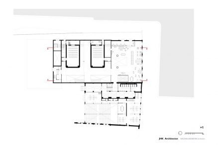 Ďalšie toalety sa nachádzajú hneď vedľa reštaurácie, tie sú pravým opakom: sú v jasnom priestore s vysokým stropom a svetlom zhora. Tretie hygienické zázemie sa nachádza v bývalej uličke medzi budovami. Vonkajšia fasáda objektov zostala bez zásahu, aby história komplexu bola viditeľná pre každého návštevníka.