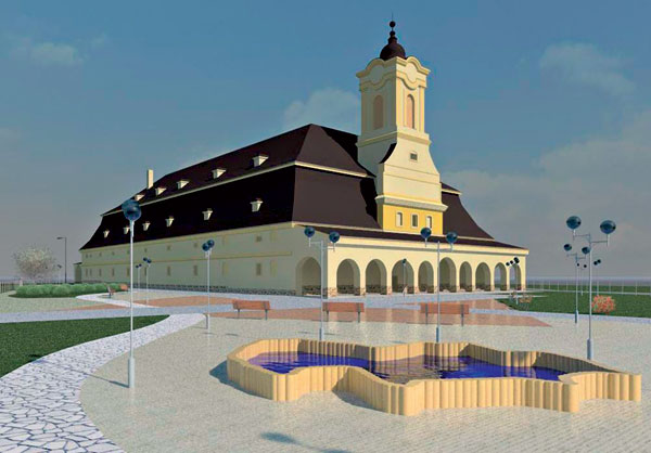 „Rekonštruovaný objekt je tvarovaný do tvaru písmena U s vytvorením polootvoreného átria južným smerom,“ hovorí autor projektu Ing. arch. Ján Katuščák. „Vstup do objektu pre návštevníkov je zo západnej strany, popod vežu a cez otvorenú arkádu. Vstup pre zamestnancov a zásobovanie sme navrhli z východnej strany objektu. Pred severnou fasádou stavby je navrhnutá spevnená plocha vo forme námestia pre pobyt návštevníkov, oddych a relax obyvateľov mesta a okoloidúcich. Objekt je zastrešený systémom manzardových striech nad prevýšenou jednopodlažnou hmotou. Architektúru stavby akcentuje veža vo vstupnej časti objektu. Vnútorné priestory stavby sú presvetlené cez fasády a strešné štíty nad vstupmi, vikiere v pôvodnom tvare slúžia na presvetlenie podkrovného priestoru.“