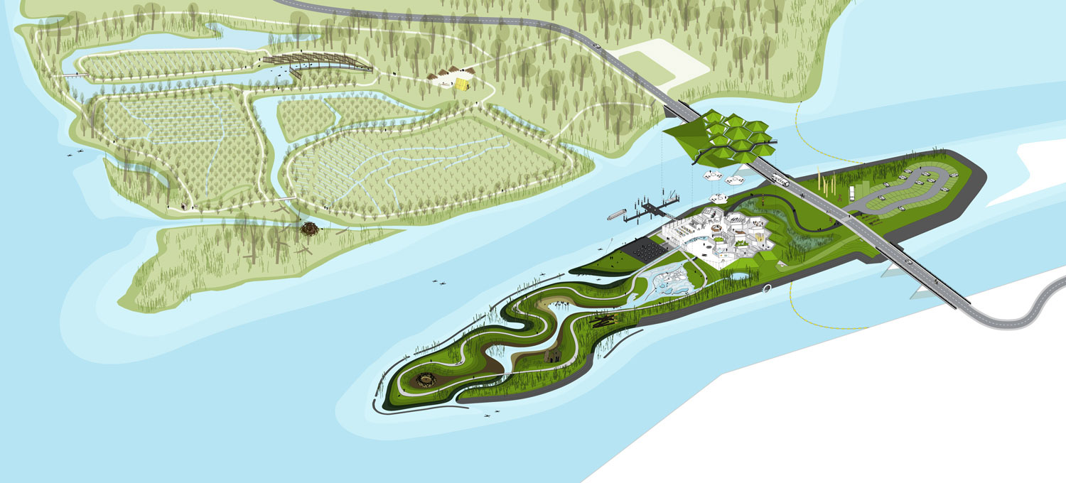 Architekti pri návrhu dbali na symbolické prepojenie budovy s prírodou, ktorá je tu zosobnená vo forme jedinečných sladkovodných prílivových mokradí – tie sú pre oblasť typické a vytvárajú ideálne prostredie pre bohatú faunu aj flóru.