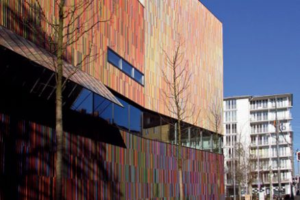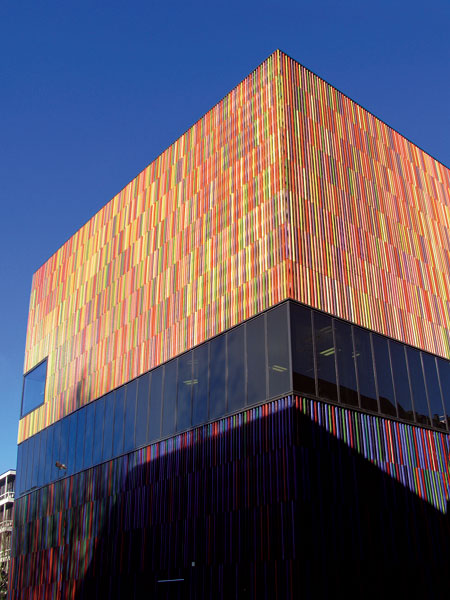 Ako obrazAj keď na fotografiách sa môže múzeum javiť príliš expresívne, v skutočnosti nemá nič spoločné s nesúladom typickým pre gýčové pestré zmesi. Možno aj preto, že architekti šikovne poukladali stovky odtieňov v takom tesnom kontakte, že spolu kreujú jeden zlievajúci sa impresionistický obraz. Čím z väčšej diaľky sa človek na budovu pozerá, tým súvislejšie farebné pole pred ním vzniká. Keď sa približuje, plochy sa rozbíjajú do jednotlivých farebných tieňov. Túto hru dosiahli architekti použitím niekoľkých rôznorodých vrstiev na fasáde.
