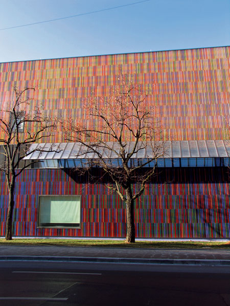 Akú lepšiu reklamu možno urobiť umeniu, ak nie umeleckým, ba priam výtvarným stvárnením schránky, ktorá ho hostí? Museum Brandhorst, otvorené tohto roku v Mníchove, dáva okolitému neoklasicistickému prostrediu najavo moderný charakter ukrývaných umeleckých artefaktov. Keď prechádzate popri ňom, nevdojak si uvedomíte, ako mäkko dokáže budova napriek svojej svojráznosti pôsobiť. Farebný exponát, za ktorým sa skrýva meno berlínskeho ateliéru Sauerbruch Hutton, premieňa už samotnú ulicu na svet abstrakcie.