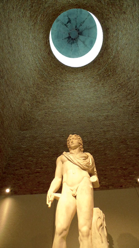 Nové výstavné miestnosti sa vytvorili pomocou prefabrikátov obsahujúcich biely cement mixovaný s úlomkami mramoru. Ostatné chýbajúce komponenty sa vytvárali z neopracovaného pôvodného tehlového muriva. Samozrejme, používali sa ručne vyrobené recyklované tehly. Stavebné materiály sa kontinuálne prelínajú s pôvodnými rekonštruovanými časťami a formujú originálne dielo. Úplne nové stavebné diely si museli vytvoriť vlastnú interpretáciu, napriek tomu zapadli do celkového konceptu aj bez toho, aby imitovali historické detaily.