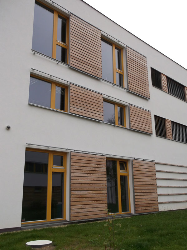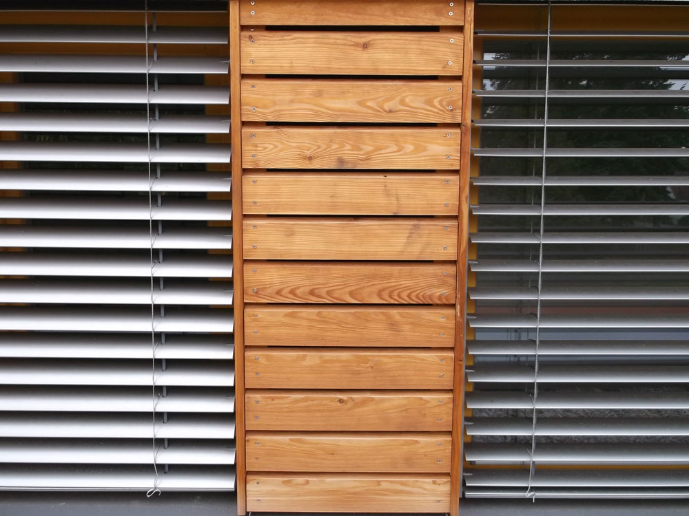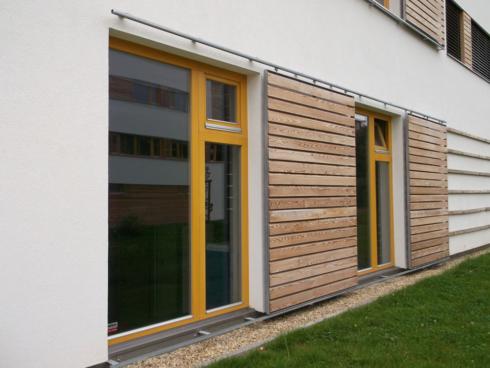 Vďaka variabilnému posúvaniu pozdĺž budovy nezaberajú posuvné okenice takmer žiadne miesto.