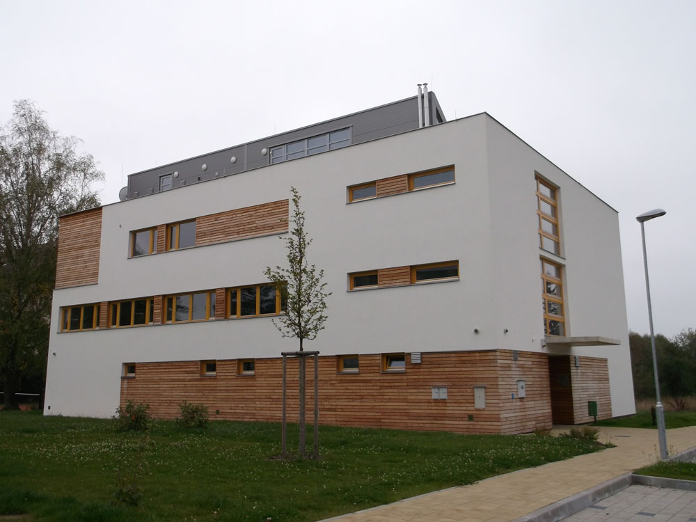 Na pracovisku bude k dispozícii klimatický veterný tunel na výskum stavebných materiálov a technológií aj unikátne pracovisko pre röntgenovú veľkoplošnú tomografiu. Predmetom výskumu bude aj zisťovanie vplyvov klímy na správanie a životnosť materiálov a konštrukcií (vrátane architektonického dedičstva).Centrum pozostáva z dvoch budov, ktoré boli postavené od marca 2011 do februára 2012. Po vybudovaní betónových základových dosiek sa začalo so zhotovovaním betónovej konštrukcie stien. Trojpodlažné budovy sa následne zateplili polystyrénom a na povrchovú úpravu väčšej časti budov sa zvolila omietka. Ostatné časti konštrukcie boli zaizolované a obložené dreveným obkladom. Tienenie sa zabezpečilo horizontálnymi exteriérovými žalúziami alebo posuvnými okenicami na báze dreva.