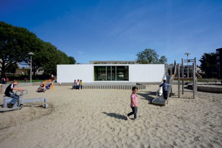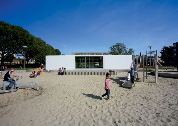 V centre dianiaPotreba pavilónu vznikla, keď sa mesto Utrecht rozhodlo presunúť ihrisko na nové miesto v blízkosti základnej školy. „Mesto nás požiadalo, aby sme vytvorili budovu v rámci ihriska, kde sa deti budú môcť hrať a ktorá bude slúžiť aj ako kontrolné stanovisko pre dospelých, ktorí budú dozerať na hru vonku,“ povedal pre časopis ASB jeden z architektov, Chris van den Berk, polovica z dua ateliéru Mulders vandenBerk Architecten. „Mestský úrad pre rozvoj chcel, aby bola budova pavilónu výnimočná a aby sa stala centrálnym bodom okolia,“ konkretizuje architekt zadanie. Prvú úlohu architekti splnili – prízemná budova je jednoduchá a elegantná, rozhodne však nie je nenápadná. Opticky úlohu „ohniska diania“ spĺňa určite, či však bude funkciu ústredného diania plniť aj v praxi, overí až čas.