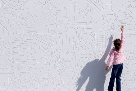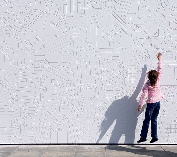 Inšpirované deťmi„Začali sme s návrhom jednoduchej hmoty s oddelenými priestormi na hranie od priestorov s inou funkciou a v ďalšom kroku sme hľadali spôsob, ako by sme interiérom mohli stimulovať detskú kreativitu a vzbudiť v deťoch zvedavosť a chuť učiť sa nové veci,“ opisuje tvorbu pavilónu architekt Chris van den Berk. Dodáva, že práve v tejto fáze vznikol nápad s rozprávkovou fasádou. Keďže architekti chceli, aby sa deťom pavilón páčil vo vnútri, ale aj zvonka, rozhodli sa jeho fasádu ozdobiť rozprávkovými motívmi. Spýtali sa preto detí z okolia, ktoré rozprávky poznajú a majú rady – vznikla tak mozaika rozprávok z celého sveta, keďže viac ako 30 percent obyvateľov Utrechtu tvoria rôzne národnostné menšiny. Z najlepších nápadov pripravilo štúdio grafického dizajnu DesignArbeid návrhy dekorácií. „Pohľad na fasádu sa mení, niekedy vidíte viac, niekedy menej. Ikona každej rozprávky je totiž súčasťou celej dekorácie,“ hovorí architekt Chris van den Berk.