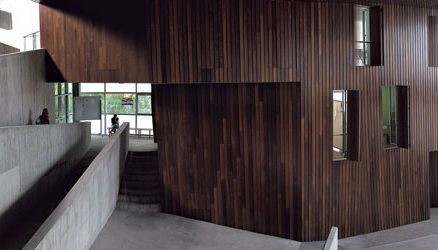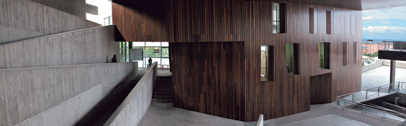 Celá stavba je pomerne zložitá a pôsobí monumentálne. Tento dojem je posilnený rôzne sa vinúcimi rampami, schodiskami so zábradliami z hrubej ocele a predovšetkým kľukatou konštrukciou na nádvorí. O to civilnejšie potom vnímame interiéry učební a kabinetov. Gpy arquitectos nepracujú s ornamentom a ich detailmi, napríklad svetlíkmi, sú až skulpturálne. Jediným ornamentom, ak by sa to tak dalo nazvať, je svetlo a práca s ním. Preniká budovou otvormi okien, vikierov aj škárami. Zaujímavo je riešená južná fasáda. Železobetónová konštrukcia je zdvojená a tak zabraňuje prehriatiu miestností. Zároveň rozptyľuje svetlo a vytvára príjemnú svetelnú pohodu.