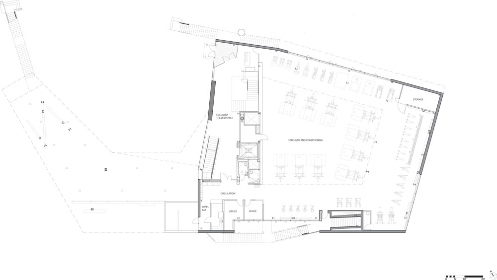 Zadanie Kolumbijskej univerzity bolo jasné: urobiť novú vstupnú bránu pre revitalizovaný športový komplex Baker Athletics, v ktorom sa rozvíja študijný program pre budúcich učiteľov športu. Nové zariadenie ponúka takmer 4,5-tisíca štvorcových metrov plochy na rôzne športové aktivity, ale aj administratívu, mítingovú miestnosť v štýle divadelného auditória, študovne a menšie nemocničné oddelenie.