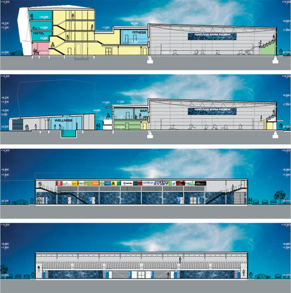Mestské zastupiteľstvo práve v tomto období rozhoduje o finálnej podobe hokejového štadióna. Predstavený projekt je z dielne ateliéru Ing. arch. Mariana Rusnáka – Rusnák Architects. Hlavnou myšlienkou návrhu je diverzifikácia funkcií stavieb – poskytnutie rozmanitých športovo-relaxačných služieb v rámci jedného areálu: hokejová hala, fitness centrum, wellness centrum, bazén a reštaurácia s kaviarňou. Cieľom je vytvorenie priestorového potenciálu na pokračujúci rozvoj športu v časti mesta s existujúcimi športovými plochami a aktivitami. V tomto projekte ide primárne o hokej, kde sa počíta s prenájmom plochy súkromným hráčskym skupinám. Otvára sa tým, samozrejme, aj možnosť vytvorenia športového oddielu s perspektívou ligových súťaží či rozvoja krasokorčuľovania a verejného korčuľovania v meste.