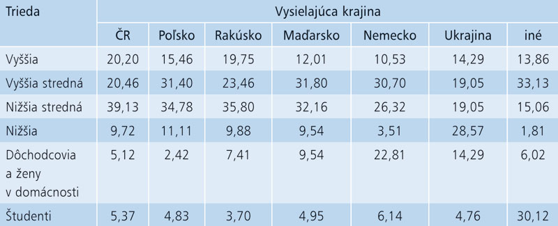 Sociálny status zahraničných návštevníkov SR (v %)