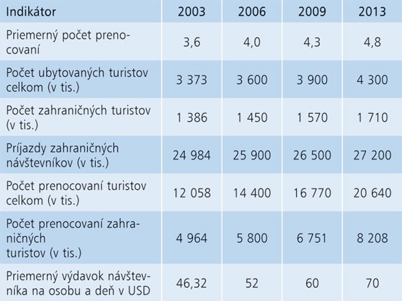 Vývoj indikátorov cestovného ruchu v SR s odhadom do roku 2013