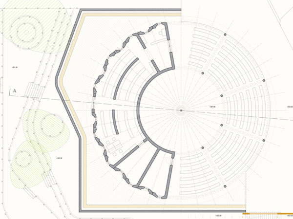 Vystužená základová a zvislá nosná konštrukcia prenáša zaťaženie od strechy a klenieb.