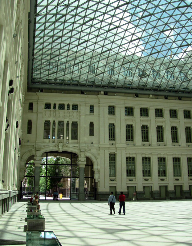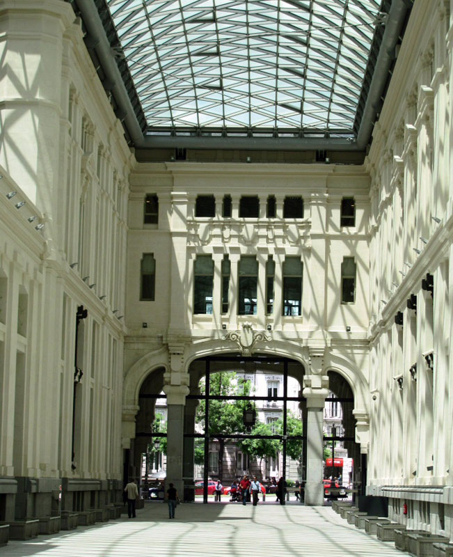 Vo víťaznom návrhu Arquimática prezentovala vnútorný dvor – zakrytý ľahkou, transparentnou strešnou konštrukciou – ktorý bude slúžiť na oficiálne príležitosti, koncerty a na podobné, od poveternostných vplyvov závislé podujatia. Tak sa stal tento dvor jedným z najobľúbenejších a často využívaných krytých námestí Madridu.