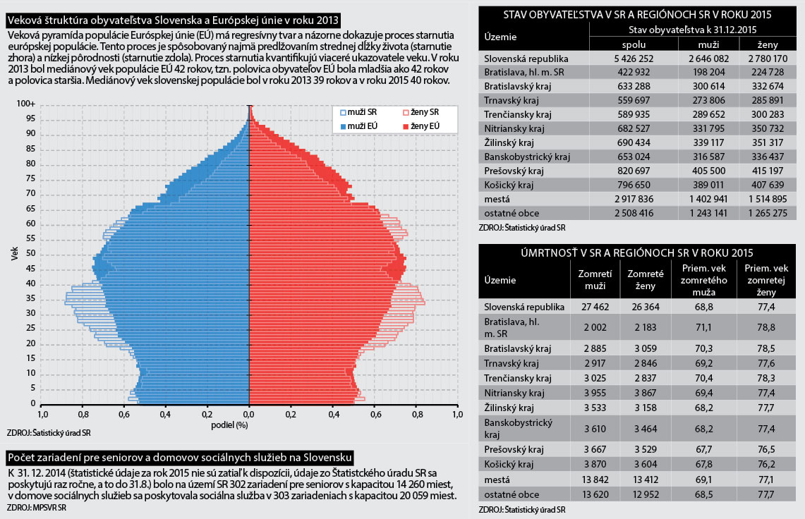 Development v oblasti výstavby domovov sociálnych služieb a zariadení pre seniorov je ešte stále na okraji záujmu investorov, ale je to oblasť, ktorá v uplynulom období zaznamenala výrazný pohyb. Stále prevládajú zariadenia, ktoré vznikli s plnou podporou štátu, miest a obcí, ale čoraz viac sa začínajú objavovať v tejto oblasti aj súkromné investície. Mnohokrát je to aktivita hraničiaca s filantropiou, ale prostredníctvom kvalitných služieb a pri dobrom ekonomickom nastavení sa môže táto investícia pretaviť do ziskovej návratnosti. Výstavba takýchto zariadení patrí k budúcnosti Slovenska a Európskej únie, ktorá to bude – o čom svedčia aj priložené grafy – naliehavo potrebovať.