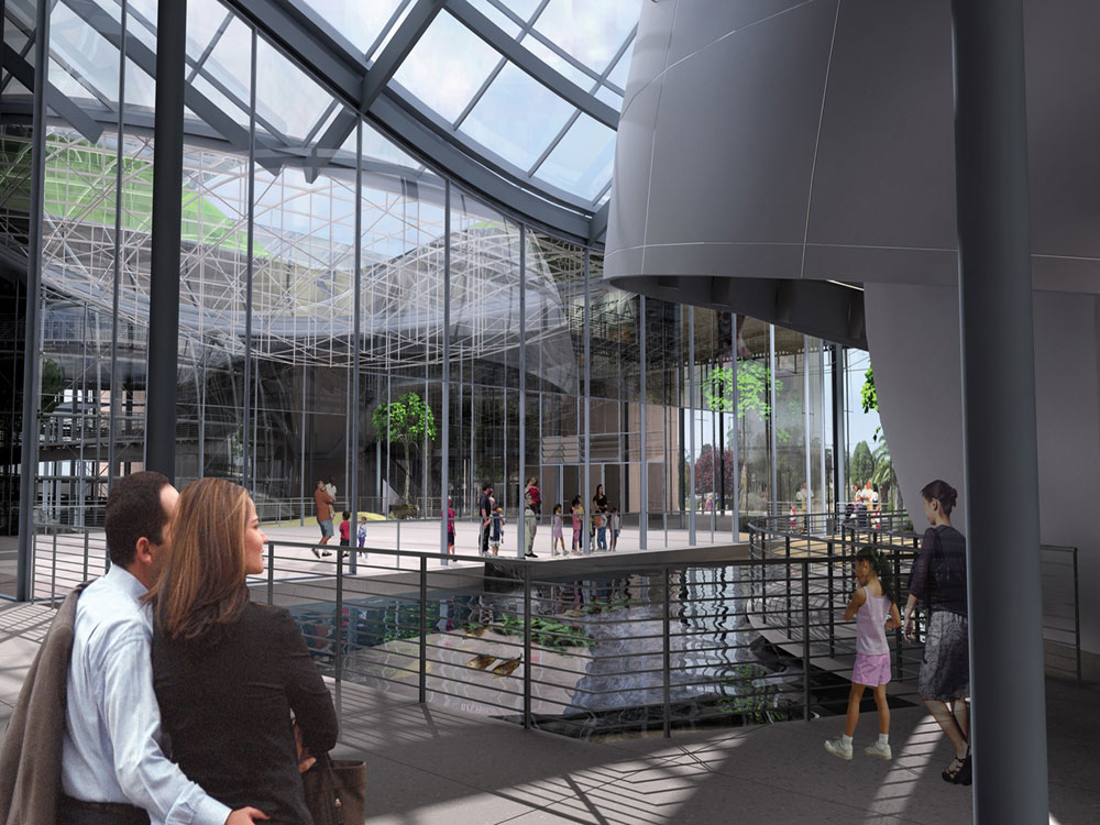 Cez strešné okná preniká prirodzené svetlo do akvária a dažďového pralesa, ktorý je súčasťou múzea