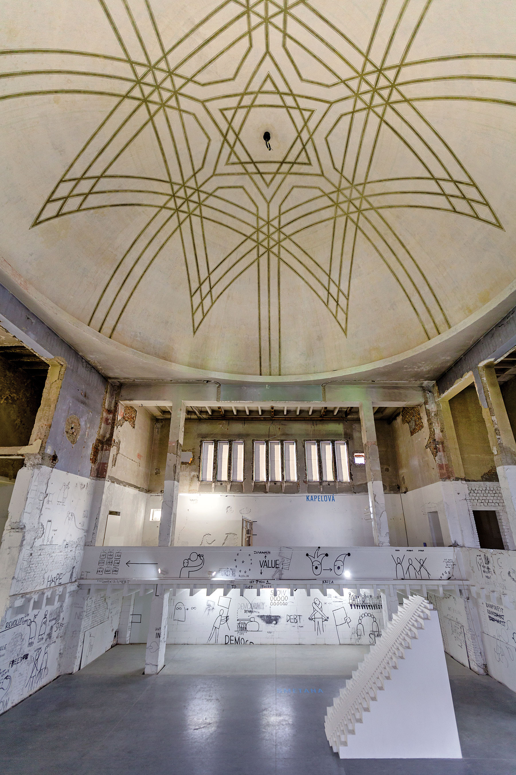 MJ: Mnohí ľudia sú zdesení z toho, čo sa tu deje, pretože sem chodili na prednášky, keď tu bola aula. To je ich spomienka. Nevedia pochopiť to, že priznávame proces prestavby. Každý očakáva, že keď sa niečo otvorí, tak to už bude vynovené, pekné, hotové. Tu pracujeme so surovou podstatou objektu, ktorý je z veľkej časti len odkrytý a mnohé reštauračné práce sa ani len nezačali. Dokončená je len kupola a bude sa postupovať ďalej. Je to dlhoročný proces. Ak pracujete takýmto spôsobom, nie je jednoduché vysvetliť, že ste objekt neprišli zničiť, ale že sa postupne upravuje.
