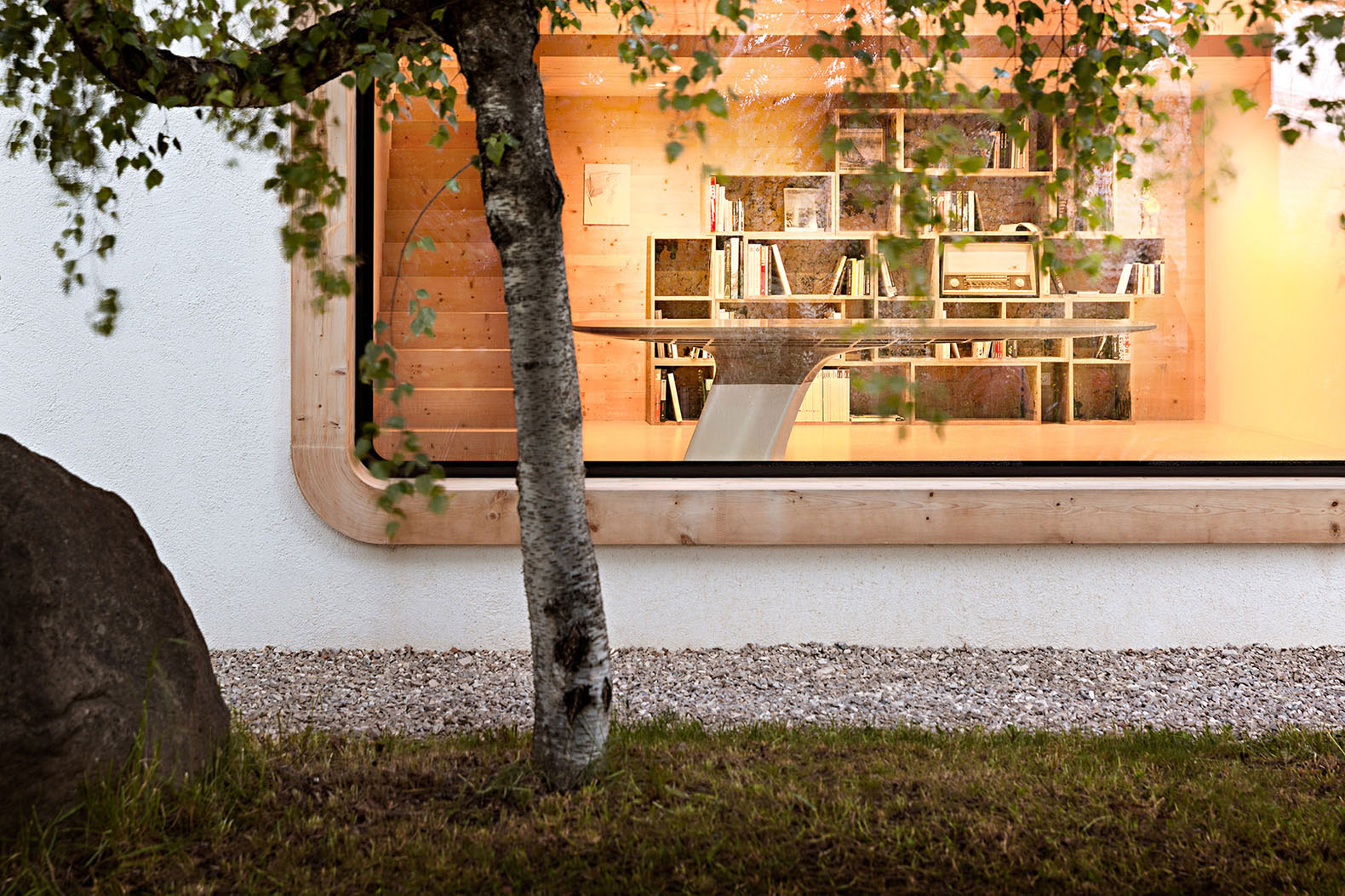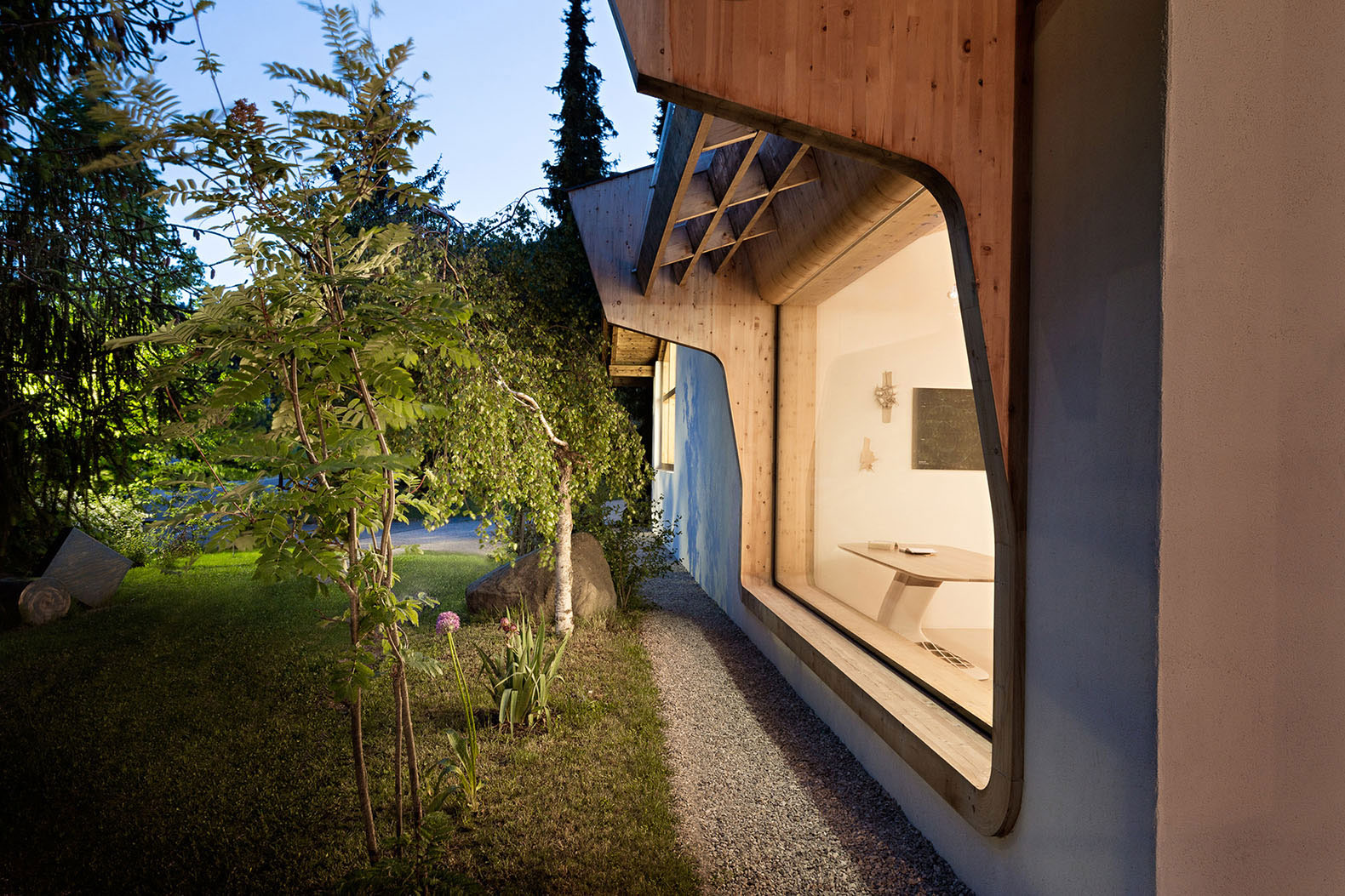 Konštrukcia okenného otvoru doslova prechádza aj cez strechu. Dva kusy týchto špeciálnych okien nahradili pôvodné tri okná a jedny dvere. Okná sú orientované na západ.
