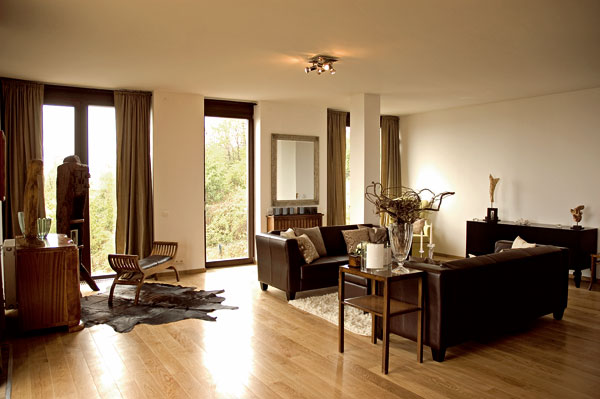 Významným špecifikom stavby je priestorová koncepcia interiéru. Tá sa trochu odlišuje od otvorených koncepcií, charakteristických pre väčšinu interiérov súčasných bytov. Rukopis anglického dizajnu je prítomný v dispozičnom riešení celej stavby. Na chodbách je mnoho vstavaných úložných priestorov, izby sú menšie, ale slnečné. Obývacie priestory situované v prízemných častiach vilových domov prepájajú interiér s exteriérom prostredníctvom priameho kontaktu so záhradou. Najväčší priestor zaberá obývačka, umiestnená vždy v južnej časti apartmánu. Devízou tejto orientácie je takmer celodenné oslnenie priestoru a vizuálne prepojenie s panorámou mesta. V niektorých apartmánoch oddeľujú kuchyňu od obývacej miestnosti posuvné dvere.