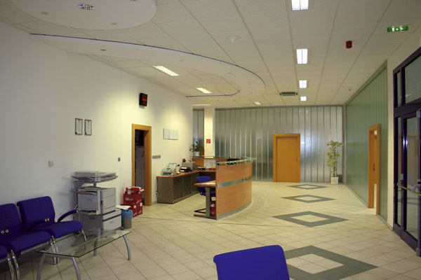 Administratívna budova sa dispozične člení na dve podlažia. Na prízemí sú priestory strážnej služby, resp. vrátnice, reprezentačné priestory – showroom – a sociálne zázemie zamestnancov výroby. Na poschodí sa nachádza administratívne sídlo firmy s kanceláriami konateľov firmy, so zasadacou miestnosťou a s priestormi pre administratívny personál. Výrobná hala sa rieši ako univerzálny otvorený celok, ktorý zabezpečuje potrebnú variabilitu pri jednotlivých výrobných procesoch. Na vstup surovín a výstup hotových výrobkov je určená jedna brána, nakoľko výrobný cyklus je riešený v polkruhovom tvare.