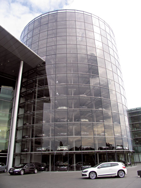 Pôsobí ako niekoľkopodlažná výkladná skriňa, v ktorej sa umiestňujú hotové automobily, čakajúce na svojich budúcich majiteľov. Zasklený valec s priemerom 30 m a výškou 44 m pozostáva z regálovej oceľovej konštrukcie s pocínovanými platformami na umiestňovanie hotových limuzín.