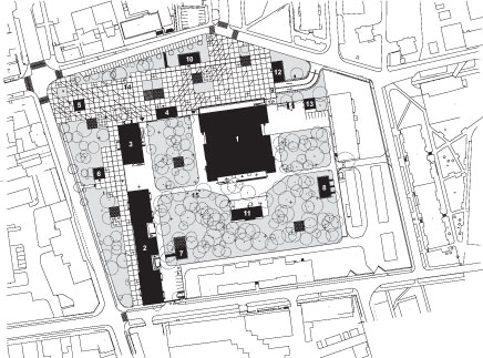 Historický park vnútri areálu je priestorom s mimoriadnymi kvalitami a novovytvorená urbánna plocha je jeho doplnením. Figúry historických budov sú rozhraním medzi týmito dvoma verejnými priestormi. Hmotou na juhovýchodnom okraji autori dopĺňajú konfiguráciu bloku.