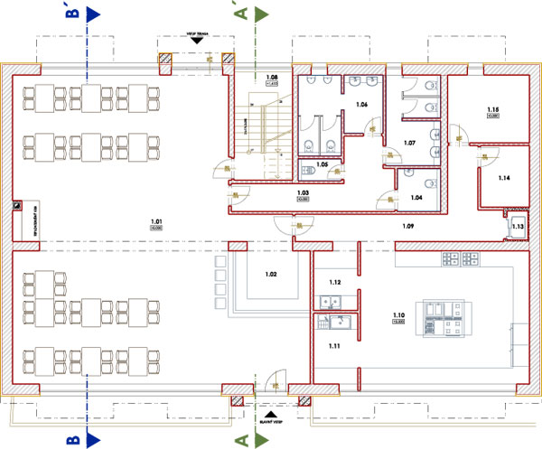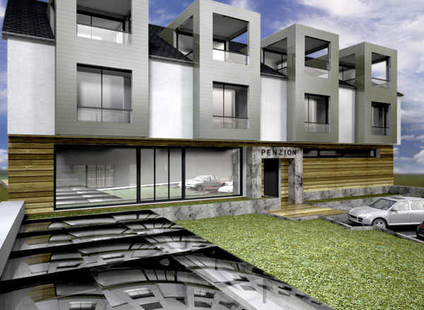 Na vytvorenej terase, ktorá prekrýva suterénny priestor, budú môcť parkovať návštevníci a zároveň tu vznikne aj terasa reštaurácie obrátená na ulicu. V suteréne navrhli architekti technické zázemie objektu, sklady kuchyne a parkovanie. Na 1. NP je situovaná reštaurácia s kapacitou 60 stoličiek s barom s recepciou penziónu, priestorom pre zamestnancov a s východom do zadnej záhradnej terasy pod drevenou pergolou s kapacitou 60 stoličiek. Na 2. NP sú navrhnuté štyri izby a dva apartmány a na 3. NP v podkroví dva luxusné apartmány. Lôžková kapacita penziónu je spolu 26 lôžok.