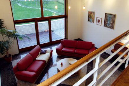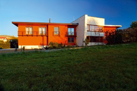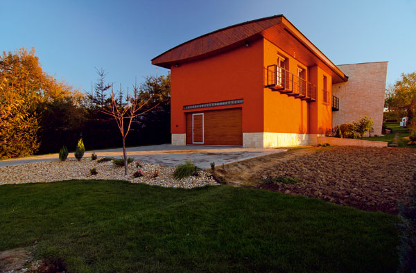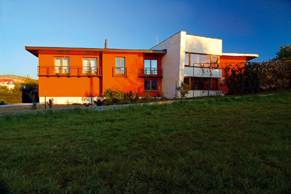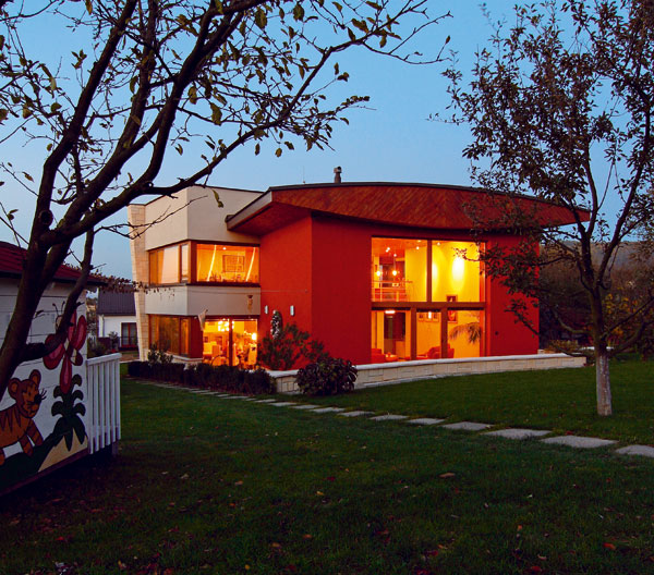 Niekoľko kovových prvkov či rytmus horizontálnych línií ešte nie sú dôkazom, že by malo ísť o typickú modernu, ktorá sa už stala bežnou súčasťou novej mestskej a neraz aj vidieckej zástavby. Naopak – tvar strechy nad čelom domu, omietky vystriedané štrukturovaným obkladom, zariadenie nepredpisovým nábytkom a uprednostnenie pocitov a predstáv členov rodiny pred výtvarnosťou interiéru ponechali domu domácku atmosféru.