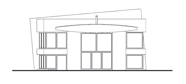 Konečný návrh, ktorý je zhmotnený v súčasnej podobe domu, bol už v pôdoryse prienikom dvoch vzájomne sa pretínajúcich obdĺžnikov, z ktorých ten menší je otočený o 12 stupňov. V tomto prípade mi išlo najmä o dodržanie presnej orientácie sever – juh a východ – západ. V pohľadoch som kládol dôraz najmä na uličný pohľad obrátený na sever. Chcel som vytvoriť kompozíciu geometrických útvarov: štvorec, šošovka, obdĺžnik – ten je tiež mierne pootočený. Akcent na členenie objektu sa prejavil aj v materiáloch, ktoré sa použili na povrchové úpravy. Hmoty domu som odlíšil omietkou (štvorec), drevom (šošovka) a kameň (obdĺžnik).