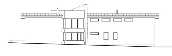 Rodinný dom vplával do mierneho svahu otočený čelom do záhrady. Odvážne sa ťahá úzkou parcelou až k sadu na jej konci.   Strohejšia fasáda prednej časti domu sa obracia k príchodzím tvarovo čistým riešením.