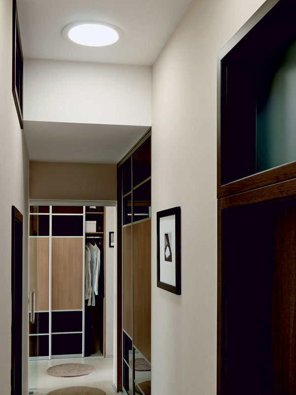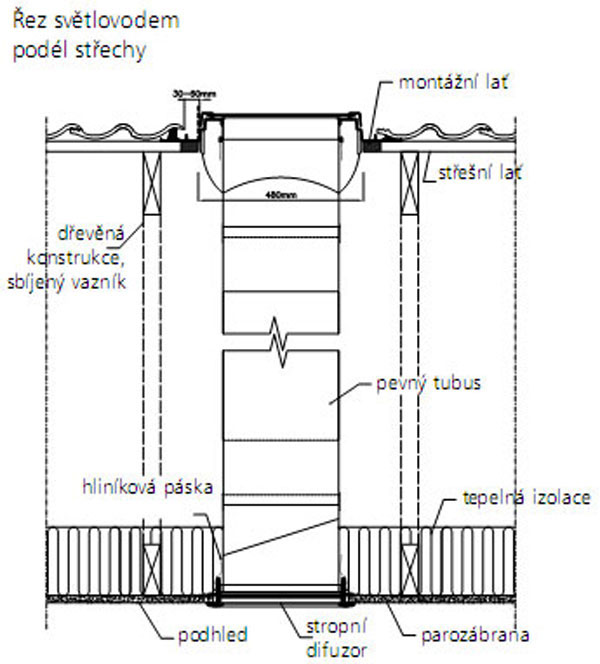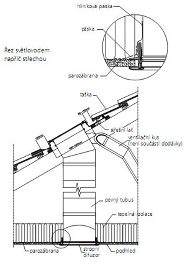 Súčasná architektúra a svetlotechnici si poradili s osvetlením denným svetlom aj na takých miestach vnútri architektonických objektov, kde nebolo možné z dispozičných dôvodov naprojektovať okná alebo iné zasklené plochy v priamom kontakte s exteriérom. Receptom na tmu sú svetlovody. Do bungalovu vo Veľkom Bieli sa vpúšťa denné svetlo dvoma svetlovodmi umiestnenými v strešnej konštrukcii nad chodbami a ďalším svetlovodom priamo nad vstupom do domu, ktorý sa nachádza hlbšie pod presahom strechy. „Boli sme sami prekvapení, koľko svetla dávajú svetlovody. Určitý predpoklad sme mali daný výpočtom od firmy VELUX, ale realita bola oveľa lepšia,“ reagoval majiteľ Ing. Pavel Timár, inak autorizovaný stavebný inžinier. Vedel, že vzhľadom na dispozičné riešenie bungalovov sa chodba, ktorá delí dom na dennú a nočnú časť a zároveň tvorí prístup do jednotlivých miestností, ocitá v strede objektu bez denného svetla. Svetlovody, ktoré majú pri pohľade z interiéru podobu stropných svietidiel, prenášajú difúzne denné svetlo v plnej hodnote počas celého dňa. Hlavnou časťou svetlovodu je reflexný tubus s mimoriadne odrazivým povrchovom. Odrazivosť vysokolešteného povrchu dosahuje až 98 percent. Na streche sa svetlovod tvári ako malé strešné okno zakomponované do krytiny. Výrobca tvrdí, že inštalovať svetlovod patrí k jednoduchým stavebným úkonom.