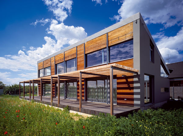 Omietky vonkajšie, vnútorné: drevený obklad IPE, stierka Baumit
