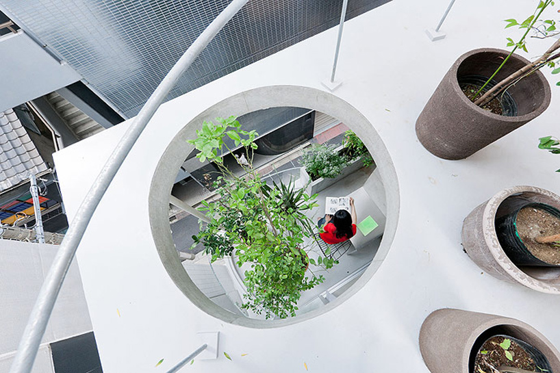 Autorom domu s vertikálnou záhradnou fasádou nie je nik iný ako držiteľ Pritzkerovej ceny za architektúru Ryue Nishizawa. Jeho realizácie často disponujú priestorom, ktorý je ideálny na oddych a rozjímanie. Dom je pekný príklad toho, ako sa dá zahusťovať urbánna štruktúra bez znižovania množstva zelene.