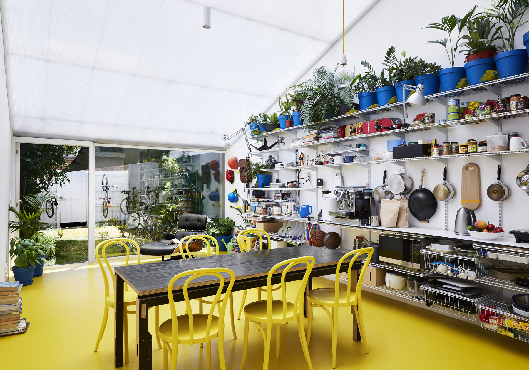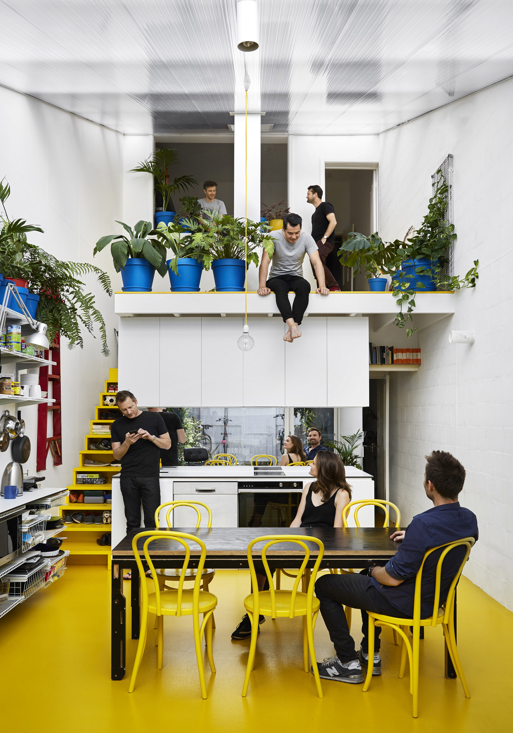 Dom s jednoduchým názvom My House, kde architekt Andrew Maynard spolu s rodinou býva, sa nachádza na poschodí. Na prízemí je kancelária Austin Maynard Architects.