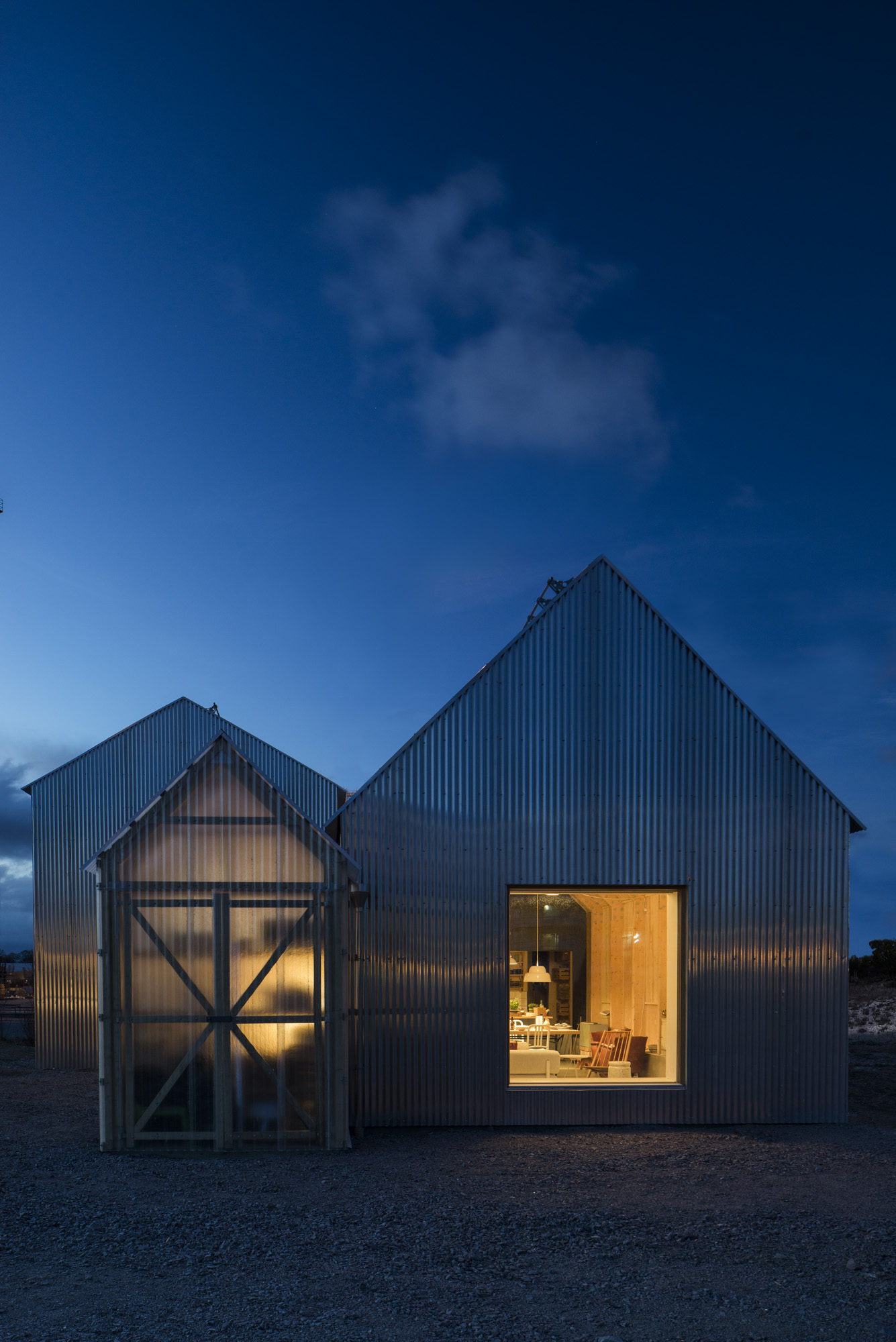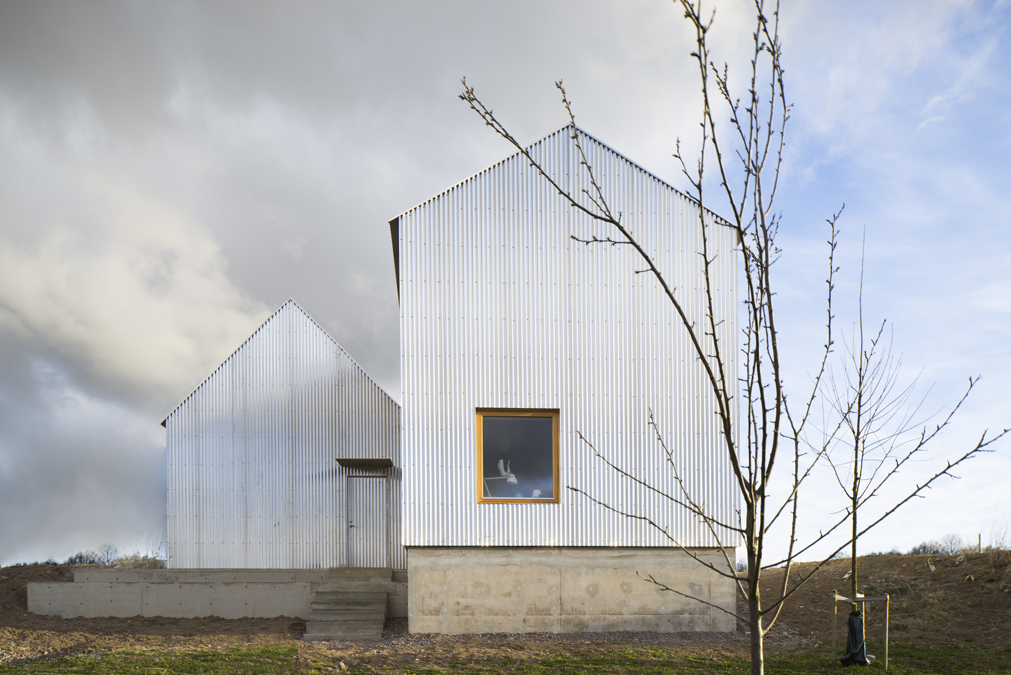 Formálna jednoduchosť tohto domu, či už zvonku, alebo v interiéri, má veľkú silu a význam, rozhodne nie je prvoplánová. Fasáda zo surového vlnitého hliníka i vďaka reflexnému povrchu vytvára zaujímavú hru svetla a tieňa, ktorá sa počas dňa mení. Bohaté významy, ktoré nadobúda, kontrastujú s jednoduchým vyjadrením.