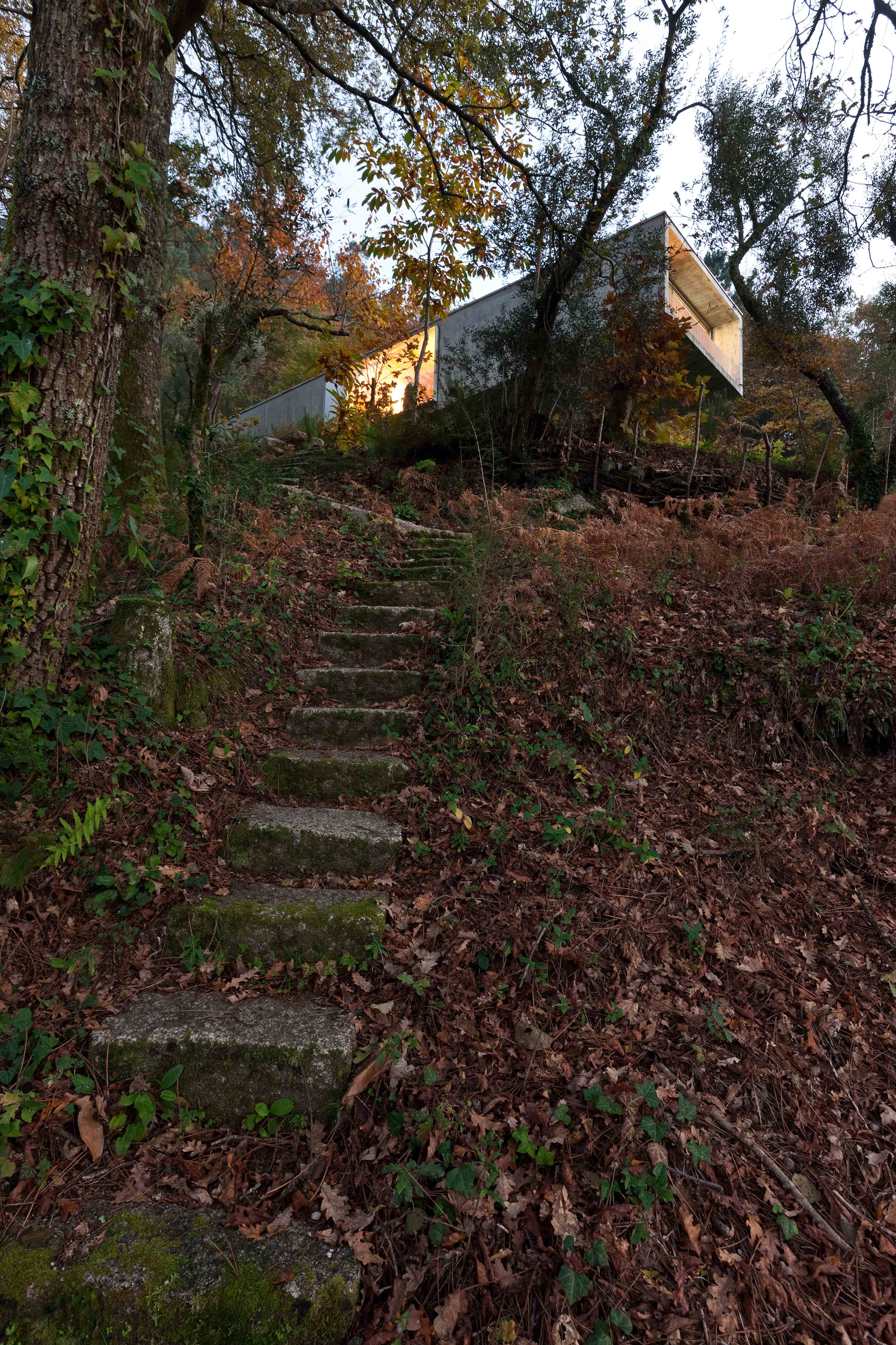 Portugalskí architekti sú známi odvážnymi stavbami, ktoré maximalizujú súlad obydlí s prírodou. Dom s výrazným presahom ponad svah približuje krásu neďalekej rieky i okolitých stromov. Vpúšťa ich do interiéru tak, ako je to len možné. Ba zdá sa, že ešte viac.